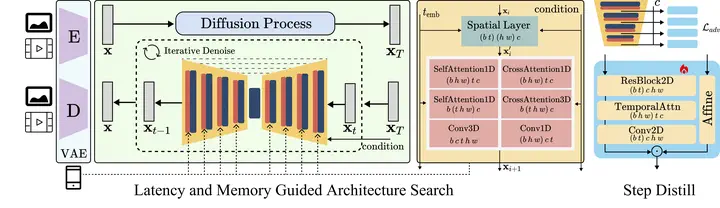 We have witnessed the unprecedented success of diffusion-based video generation over the past year. Recently proposed models from the community have wielded the power to generate cinematic and high-resolution videos with smooth motions from arbitrary input prompts. However, as a supertask of image generation, video generation models require more computation and are thus hosted mostly on cloud servers, limiting broader adoption among content creators. In this work, we propose a comprehensive acceleration framework to bring the power of the large-scale video diffusion model to the hands of edge users. From the network architecture scope, we initialize from a compact image backbone and search out the design and arrangement of temporal layers to maximize hardware efficiency. In addition, we propose a dedicated adversarial fine-tuning algorithm for our efficient model and reduce the denoising steps to $4$. Our model, with only $0.6$B parameters, can generate a $5$-second video on an iPhone 16 PM within $5$ seconds. Compared to server-side models that take minutes on powerful GPUs to generate a single video, we accelerate the generation by magnitudes while delivering on-par quality.
